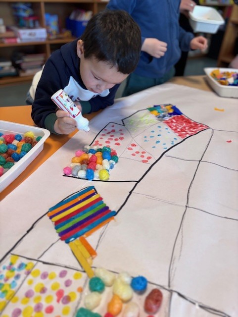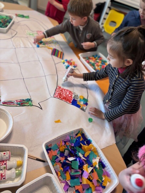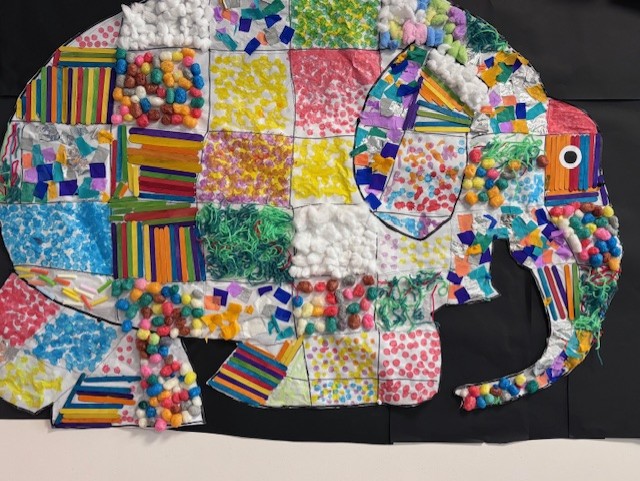 Pour conclure cette belle journée, les enfants ont réalisé une grande fresque collective d’Elmer, symbole de diversité et de vivre-ensemble.